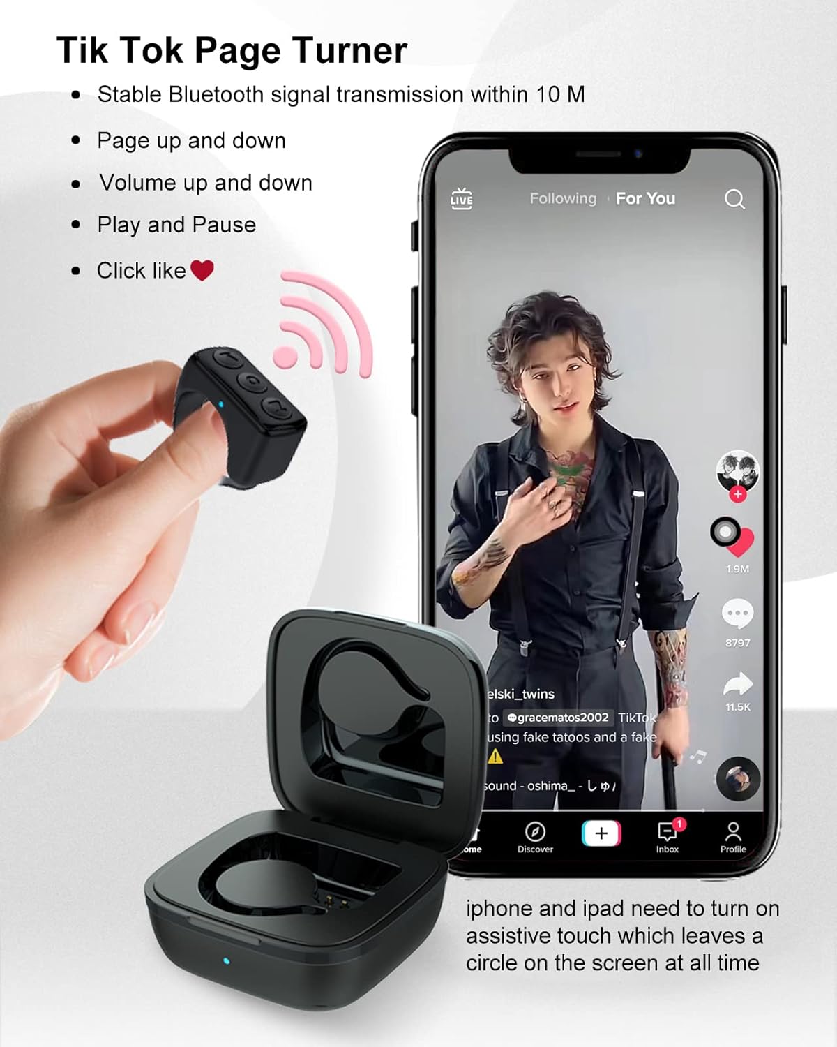 Making a TikTok has never been easier. Once the ring is on their finger and connected to their phone, they can control their phone, hands-free!